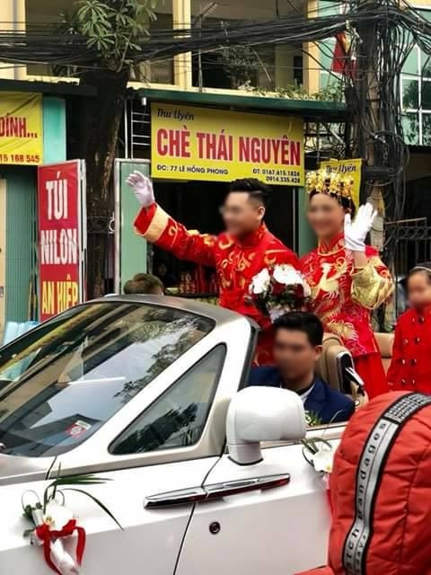 Cụ thể, cô dâu và chú rể mặc áo dài đỏ đứng trên ô tô mui trần màu trắng, vẫy tay chào mọi người. Đi song hành với chiếc xe là 1 đoàn “quái xế motor” phân khối lớn. Đoàn xe liên tục rú ga tạo thành âm lớn và bắn pháo giấy tung khắp đường phố. Ở nhiều đoạn đường, tiếng động cơ xe nổ rất to gây chói tai và khá khó chịu.