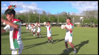 Công Phượng, Xuân Trường nhảy trên nền nhạc “Khát vọng chiến thắng”. Nguồn: VTV