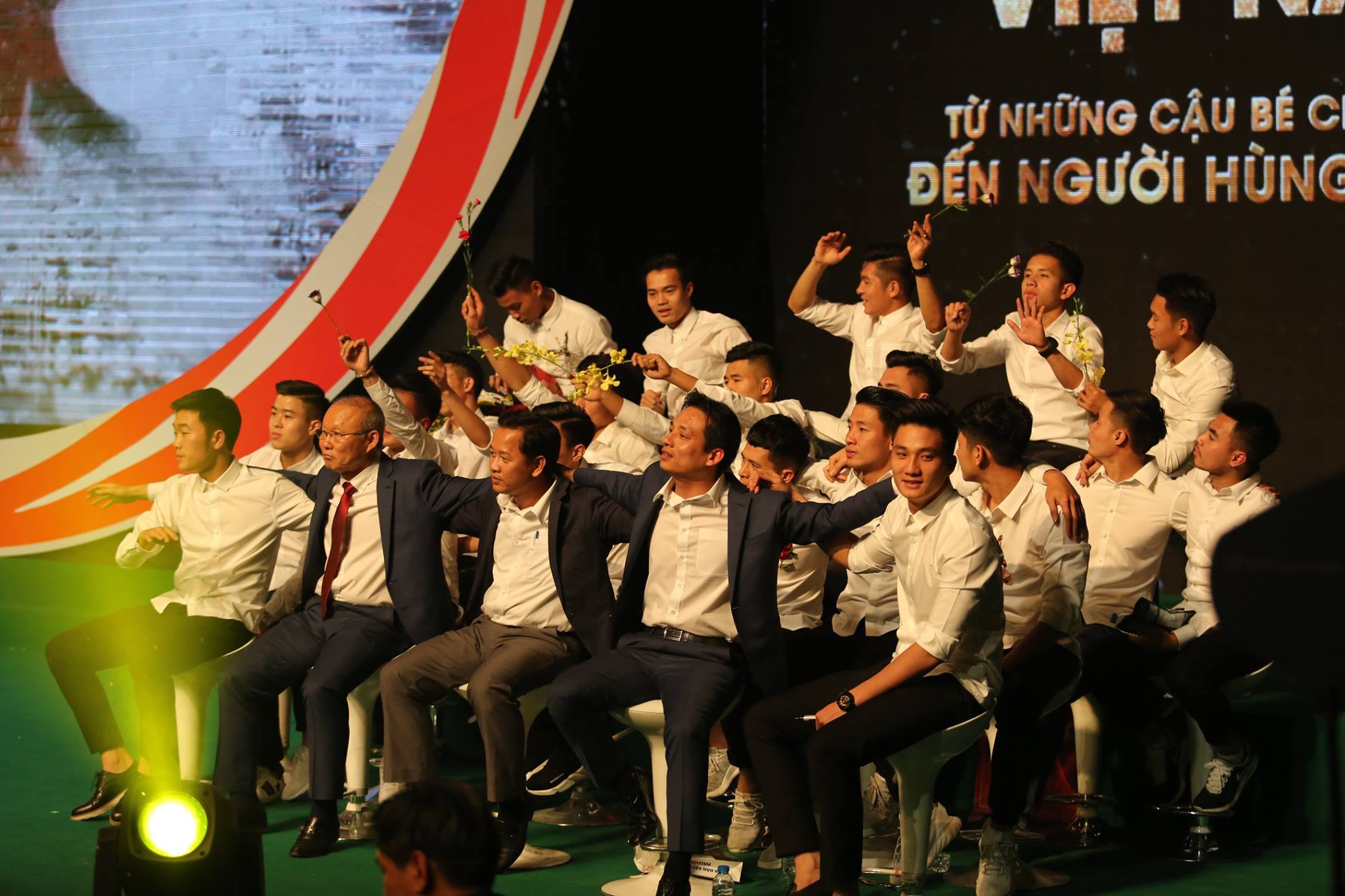Tối 6/2, chương trình giao lưu “Từ những cậu bé chân trần đến người hùng sân cỏ” đã được truyền hình trực tiếp trên kênh VTV6. Dàn cầu thủ U23 Việt Nam và HLV Park Hang- Seo cùng xuất hiện trong chương trình để giao lưu với quý khán giả cả nước. Đặc biệt, dàn cầu thủ đẹp trai trong màu áo sơ mi trắng chuẩn “soái ca” đã khiến bao trái tim fan nữ mê mệt.