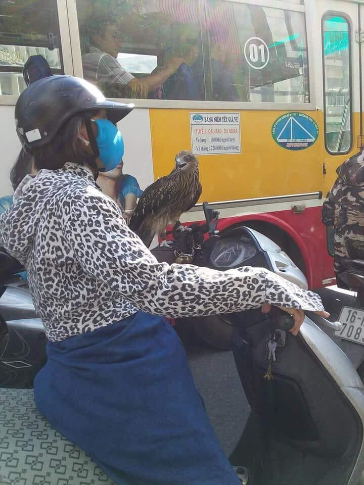 Mới đây, một thành viên có nickname Hoàng Lập đã đăng lên mạng xã hội đoạn clip ngắn ghi lại cảnh một người phụ nữ đi xe ga, mặc áo chống nắng, đội mũ bảo hiểm giống với những ninja mà cư dân mạng vẫn hay nhắc đến. Đặc biệt, trên tay người phụ nữ này còn mang theo một con chim lớn đậu trên tay.