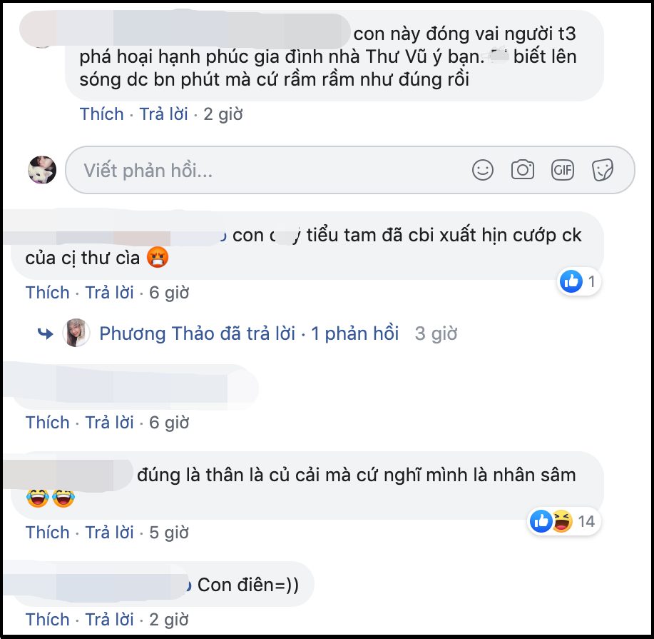 ”Cầu cho chị Thư sẽ cho tiểu tam này một trận vì cái tội dám spoil phim. Mà thật á, nếu anh Vũ bỏ vợ theo tiểu tam thì tôi tuyên bố sẽ tẩy chay bộ phim này”.