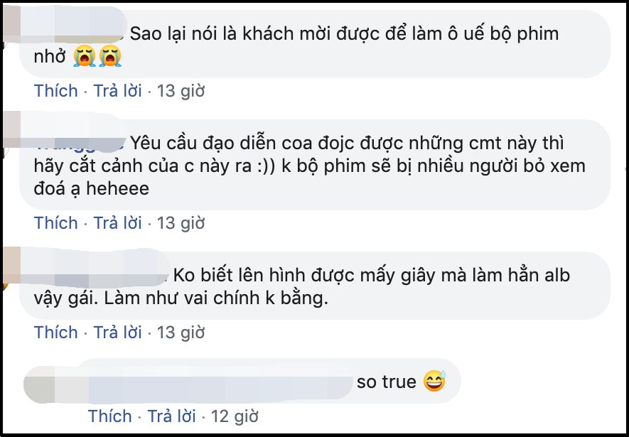 ”Có một cảnh quay ngắn thôi mà, nhất thiết phải làm lố vậy không? Tiểu tam mà cứ như vai chính ấy nhỉ. Tự hào quá cơ”