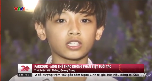 Hình ảnh trên được cắt từ chương trình Chuyển động 24h tối 18/3/2018, và cậu bé đó là Nguyễn Phạm Đình Nguyên, 10 tuổi, ở Hà Nội. Đình Nguyên lên sóng Chuyển động 24h để nói về niềm đam mê đối với môn thể thao mạo hiểm Parkour. Nhưng dường như cư dân mạng không quan tâm lắm đến Parkour, mà lại quan tâm đến… gương mặt của em nhiều hơn.