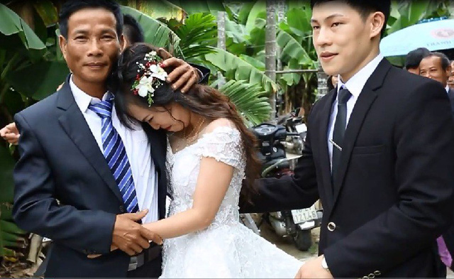 Trong một đám cưới diễn ra tại Nghĩa Đàn, Nghệ An, cô dâu vì còn lưu luyến không muốn xa gia đình nên đã chạy ùa ra níu tay bố, gục đầu vào vai bố òa khóc, không cho bố ra về.
