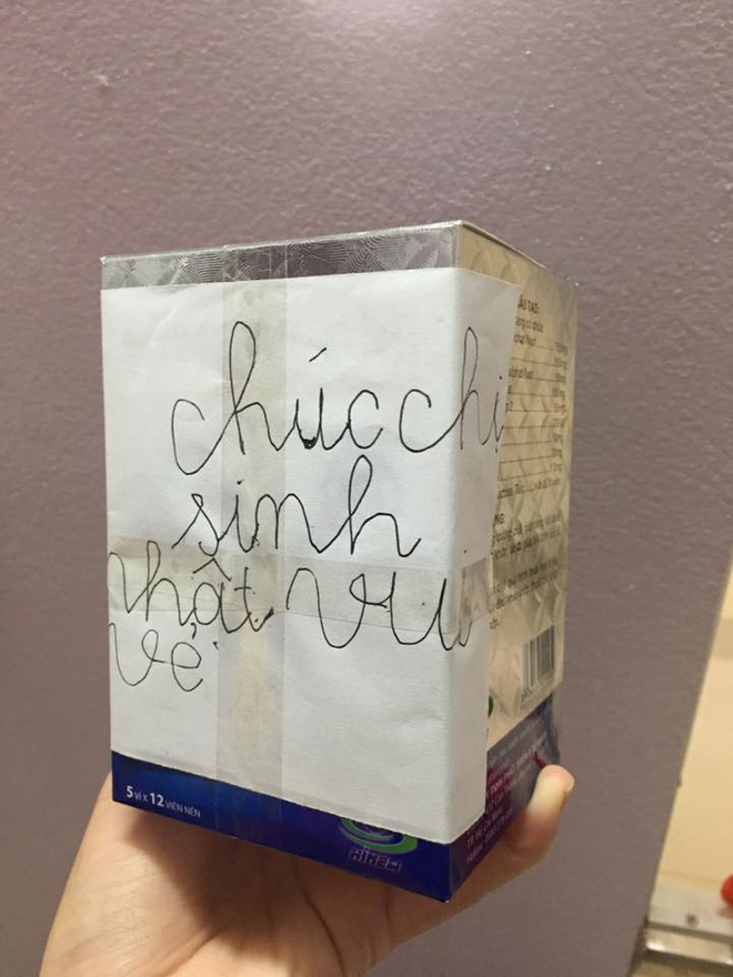 Tự tay cậu em trai chuẩn bị quà và viết lời chúc tặng chị.