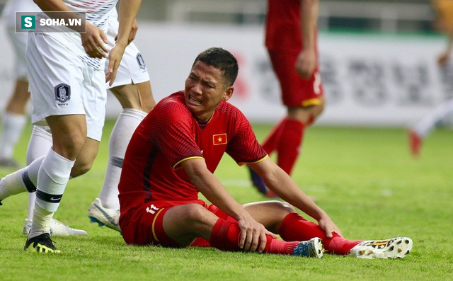 Cầu thủ lớn tuổi nhất đội tuyển Việt Nam không kìm được cảm xúc trước trận thua Hàn Quốc.