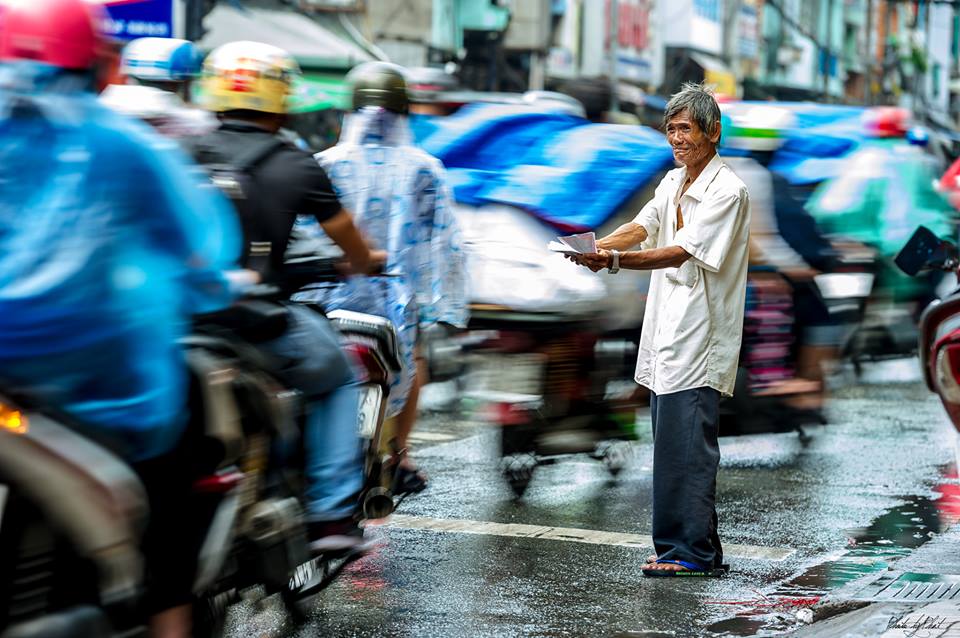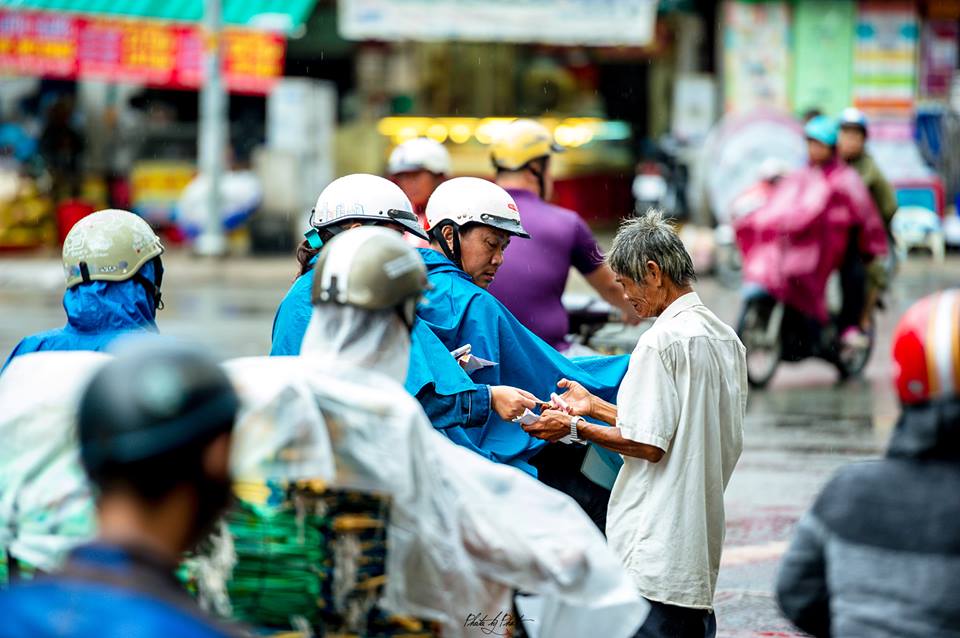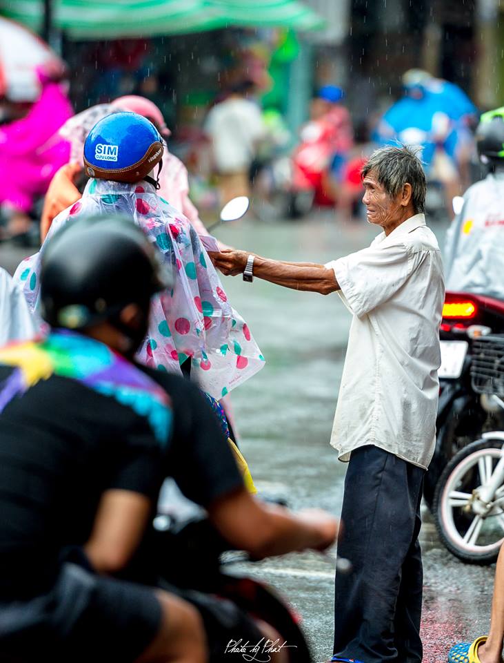 Sài Gòn đang bước vào mùa mưa. Cứ cuối chiều những cơn mưa tầm tã trút xuống, người Sài Gòn lại chật vật hơn trong cuộc sống mưu sinh. Dòng người cứ hối hả đi qua những người lớn tuổi không nơi nương tựa lại phải nuôi người thân đang cố gắng kiếm từng đồng. Hình ảnh ấy đến chính chúng ta khi vô tình đi qua một số phận kém may mắn nào đó, nhìn lại cũng thấy nghẹn ngào, xúc động và tự trách tại sao không nán lại một lát.