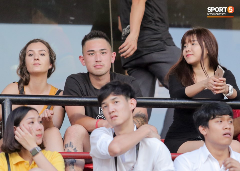 Ngồi bên cạnh cô là Keven Nguyễn, cựu cầu thủ CLB Hải Phòng và bạn gái của anh.