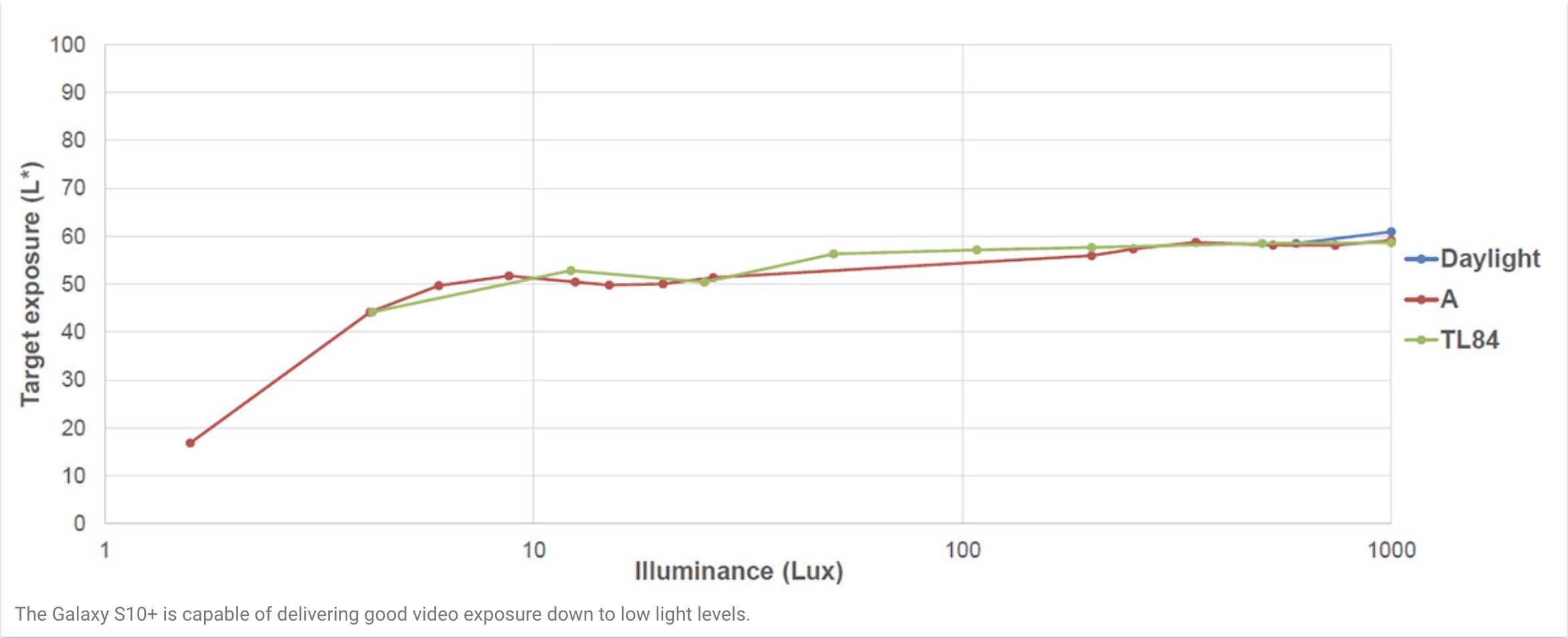 Về quay video, DxOMark đánh giá màu sắc tái tạo video trên Galaxy S10+ rất ổn định, tự động làm giảm nhiễu và tăng độ nét trong khi quay. Cơ chế khắc phục nhược điểm khi quay trong điều kiện tối của S10+ hoàn toàn đủ sức đánh bại iPhone XS Max.