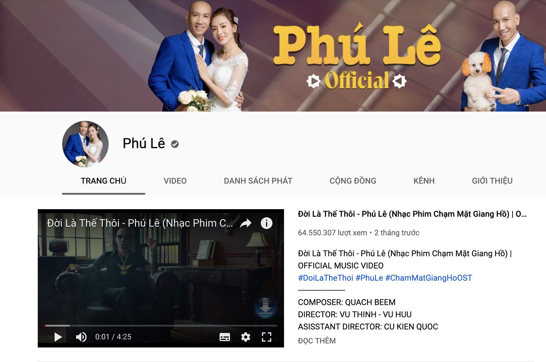 Cụ thể, kênh YouTube của Phú Lê đã “thay máu” gần như hoàn toàn những video giang hồ bằng những MV ca nhạc, tuyển tập những bài hát hay nhất,… trong khi ảnh đại diện của kênh này cũng được thay bằng ảnh cưới của vợ chồng Phú Lê.