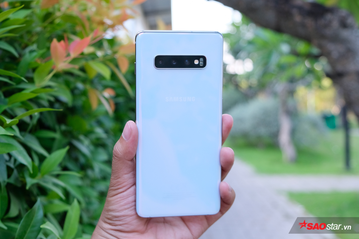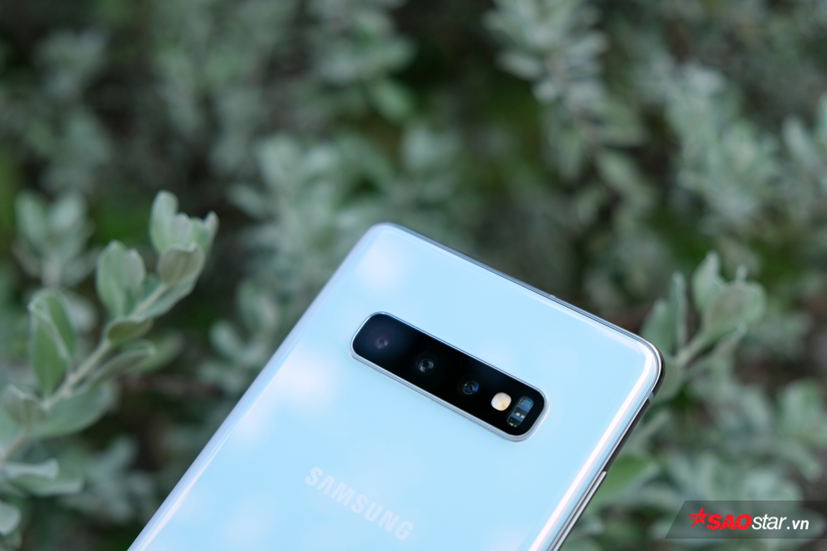 Ở mặt sau, Galaxy S10+ trang bị hệ thống 3 camera, gồm: 1 camera góc rộng (77 độ), độ phân giải 12 MP, khẩu độ f/1.5 - F/2.4; 1 camera telephoto (45 độ) 12 MP, khẩu độ f/1.4 và 1 camera góc siêu rộng (123 độ) 16 MP, khẩu độ f/2.2.