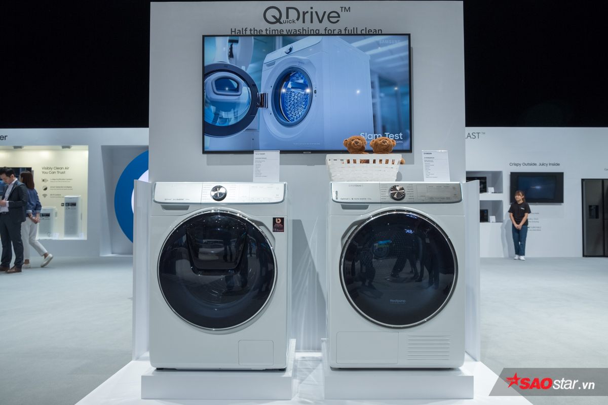 Công nghệ QuickDrive của Samsung giảm thời gian giặt xuống còn 50% và năng lượng tiêu thụ xuống 20% mà không ảnh hưởng đến hiệu suất làm sạch. Lồng giặt Q-Drum độc đáo bao gồm một lồng chính lớn và một mâm giặt phía sau cùng xoay vòng một cách độc lập.
