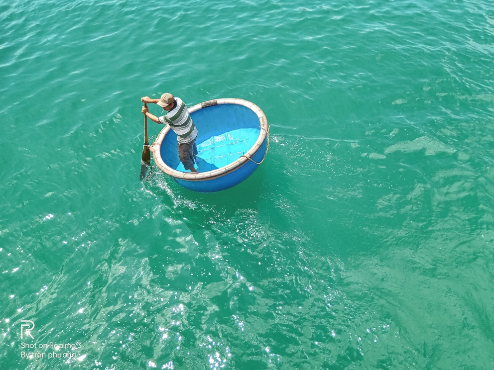 Những chiếc thúng vẫn ra khơi khi tàu cập bến.