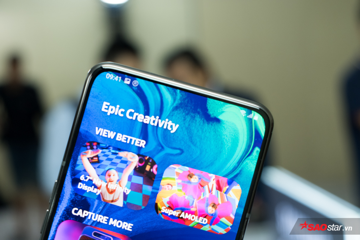 Đáng chú ý, Galaxy A80 không hề có “tai thỏ”, “giọt nước” hay camera selfie “đục lỗ” vì Galaxy A80 không hề cần diện tích cho cụm camera trước. Bằng cách này, Samsung mang đến một trải nghiệm hình ảnh chưa từng có trên di động, hoàn toàn không có “vật cản” cho phần nhìn của người dùng với các nội dung trên màn hình máy.