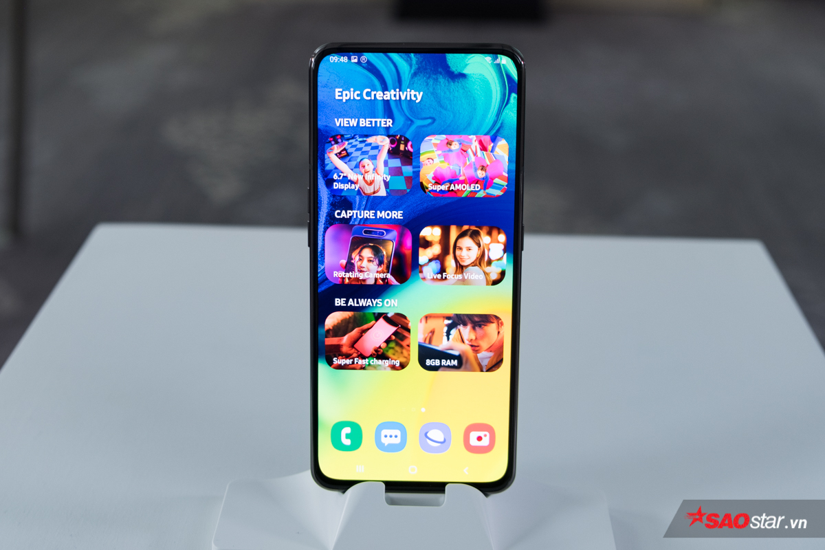 Sau thế hệ Galaxy A9 với 4 camera, năm nay, Samsung tiếp tục trình làng mẫu Galaxy A80, một sản phẩm đánh dấu cho sự xuất hiện của thế hệ camera có khả năng trượt xoay tự động 180 độ, chưa từng xuất hiện ở bất cứ mẫu smartphone nào trên thế giới.