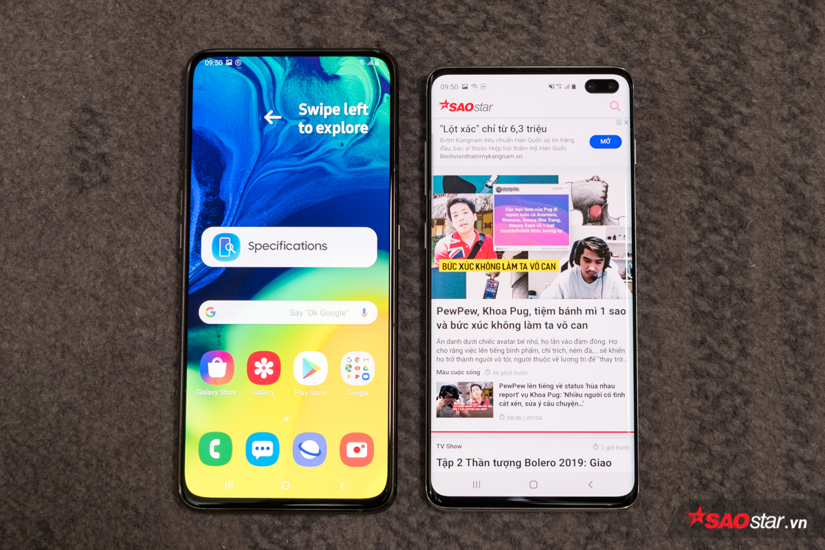 Mặt lưng của Galaxy A80 khi với “siêu phẩm” Galaxy S10+.