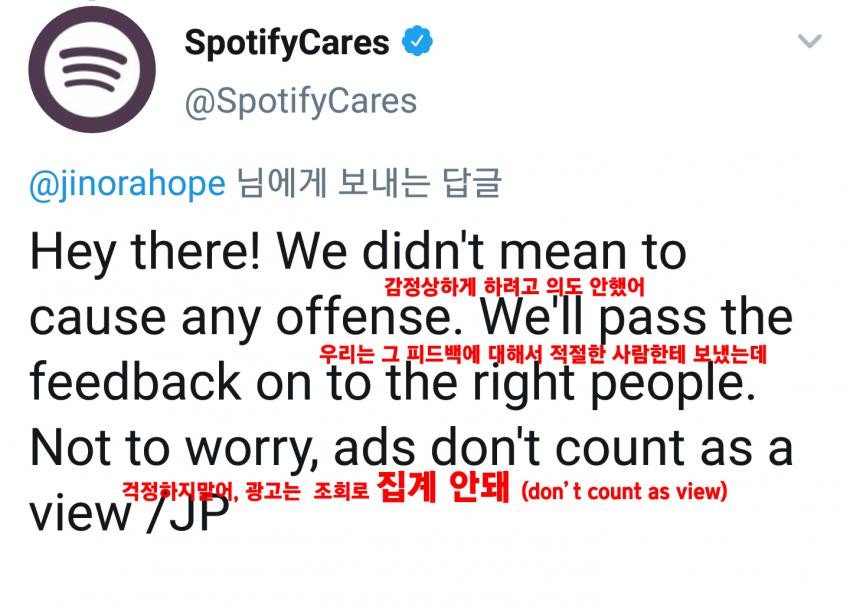Theo như bài đăng này, các tài khoản miễn phí của Spotify trước khi nghe nhạc BTS buộc phải xem một quảng cáo dài 30 giây của Kill This Love - ca khúc mới phát hành của BLACKPINK. Mỗi một lượt xem quảng cáo được tính là một view cho nhóm nhạc nữ nhà YG.