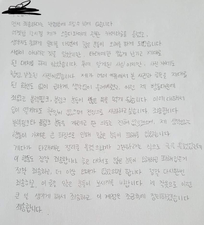 Tâm thư xin lỗi BlackPink lẫn cộng đồng mạng vì tin đồn thất thiệt ARMY này đã tung ra.