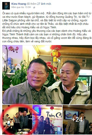 Trên trang cá nhân của tỷ phú Hoàng Kiều, ông lên tiếng phủ nhận việc quen biết với nữ đại gia mua sim đồng thời khẳng định người phụ nữ trong bức hình chụp chung với ông và nữ đại gia kia không phải là một người.