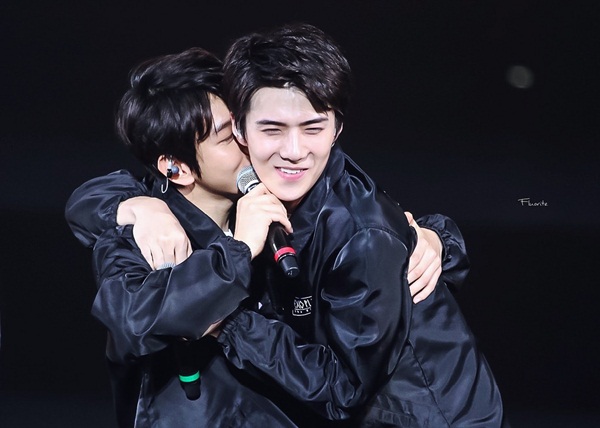 Baekhyun sẵn sàng “hùa” theo bất cứ trò đùa cũng như không ngần ngại thể hiện tình cảm với Sehun mọi nơi.