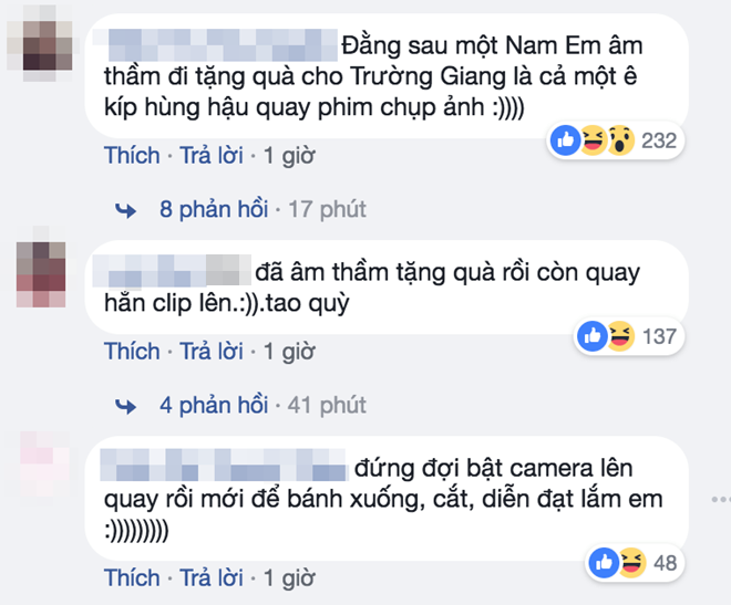Trước đó, hành động “phục kích” này của Nam Em đã hứng chịu không ít “gạch đá” từ cư dân mạng. Nhiều ý kiến cho rằng việc tặng quà được dàn dựng quá lộ liễu, hoàn toàn không phát xuất từ tấm lòng. Hôm nay lại thêm sự cố đi nhầm nhà, có vẻ chủ đề này sắp chuyển dần sang một câu chuyện “drama dài tập” ấy nhỉ?