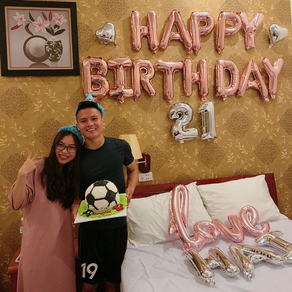Chàng trai mang số áo 19 của U23 Việt Nam đón một tuổi mới hạnh phúc bên người yêu sau một năm nhiều thắng lợi trong sự nghiệp. Rất nhiều lời chúc đã được gửi đến Quang Hải, bên cạnh đó Tiến Dũng, Tiến Dụng và Đức Chinh cũng xuất hiện và tạo dáng khó đỡ mừng sinh nhật anh.