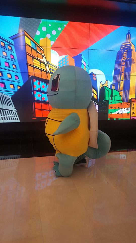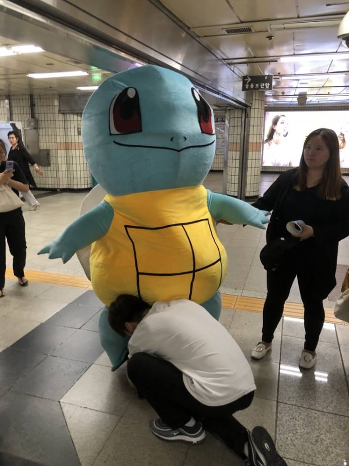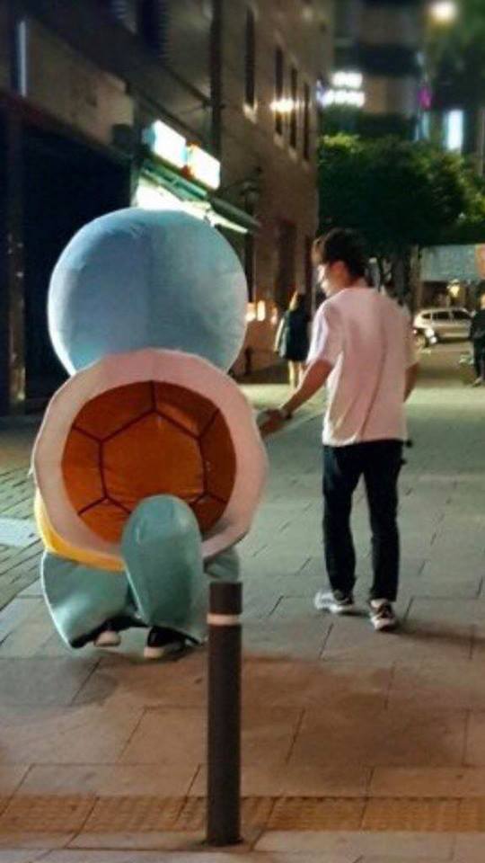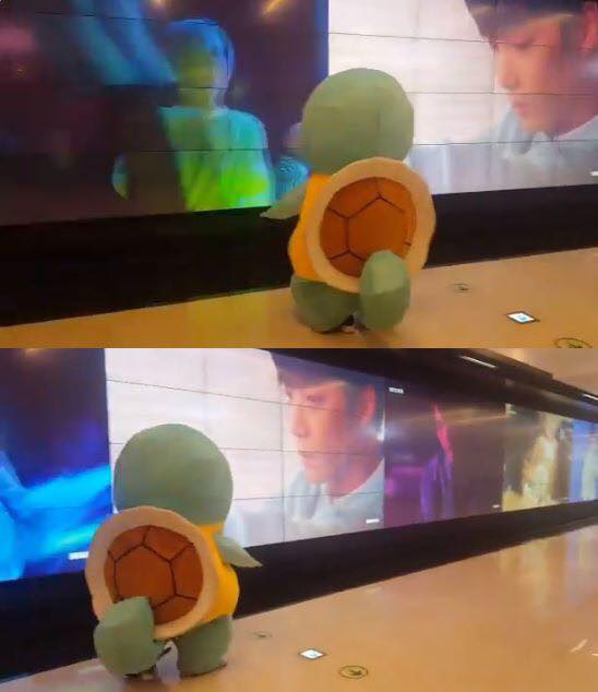 Tuy đã cố tình giấu mặt nhưng dường như nhiều khán giả vẫn nhận ra JR, thậm chí còn xin chụp ảnh cùng. Cũng phải thôi, muốn người ta không nhận ra mà anh lại đi hóa trang thành nhân vật đại biểu cho bản thân trong mắt fan - chú rùa Onibugi (Wartortle), nhân vật hoạt hình Pokémon đáng yêu.