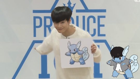Anh chàng xuất hiện trong video giới thiệu trên Produce 101 mùa 2 với tấm ảnh Onibugi (Wartortle) và biểu cảm y hệt.