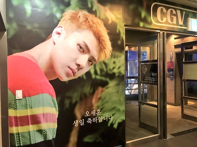 Bên cạnh đó, hình ảnh sinh nhật Sehun đồng thời xuất hiện trên hàng loạt quảng cáo tại nhiều nơi như Gangnam, Thượng Hải, Manila. Iridescent Boy (fansite của Sehun) cũng hào phóng dành tặng hẳn 10 triệu won (Hơn 200 triệu VNĐ) cho việc từ thiện. Đặc biệt, Hashtag #HappySehunDay nhanh chóng lọt top trend Twitter và còn hàng loạt món quà ý nghĩa khác đã được fan dày công chuẩn bị.
