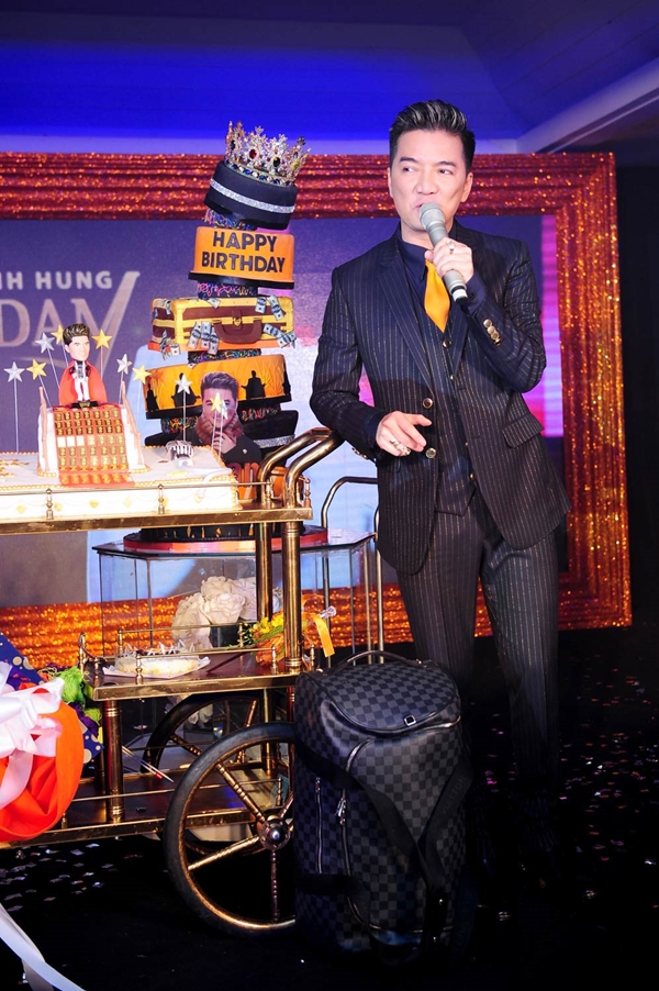 Trong dịp sinh nhật của mình, Mr Đàm được tặng hẳn một chiếc bánh kem dát 100 chỉ vàng in hình rồng.