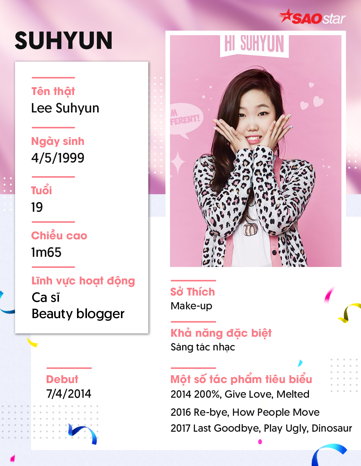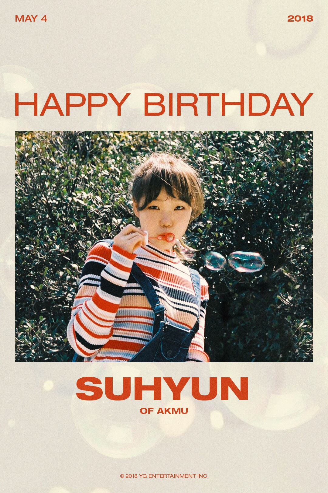 Cô gái tài năng của chúng ta đã chính thức bước sang tuổi 19 rồi. Cùng chúc cho Suhyun thật nhiều niềm vui và hạnh phúc trong ngày đặc biệt này nhé! Với những cống hiến suốt hơn 4 năm qua, cô nàng và cả AKMU xứng đáng nhận được nhiều thành công và yêu thương hơn nữa!