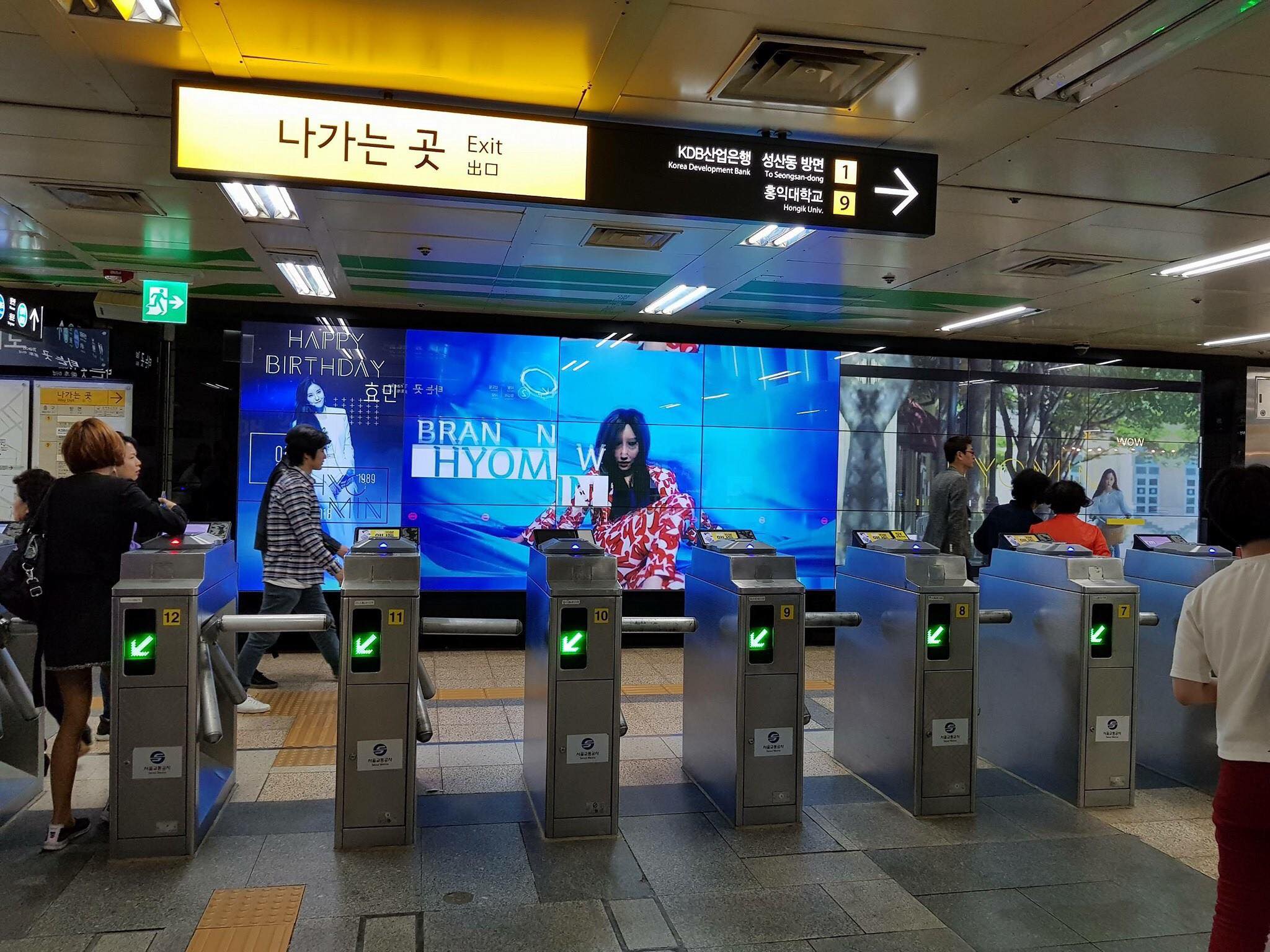 Bảng LED chúc mừng sinh nhật của Jiyeon được fan trải dài tại ga tàu điện.
