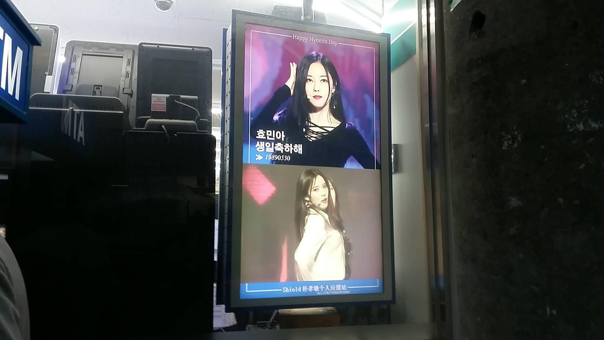Tiếp theo, fan đã chi tiền đặt bảng LED chúc mừng sinh nhật Hyomin tại gần 100 cửa hàng tiện lợi quanh khu vực Seoul.
