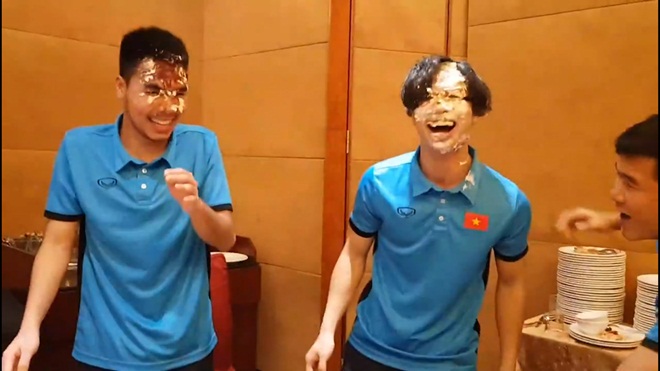 Hai anh chàng Công Phượng - Đức Huy ngày thường lém lỉnh là thế nhưng vẫn trở thành “nạn nhân” của Xuân Trường.