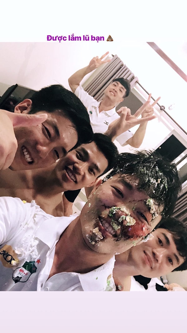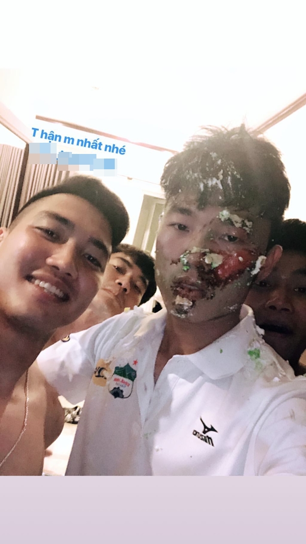 Không có mặt trong buổi tiệc sinh nhật Xuân Trường, Duy Mạnh - người chưa từng trải qua cảm giác bánh kem bê bết mặt mũi đã gửi đôi lời nhắn nhủ tình cảm đến anh. Đùa vui thế thôi chứ chắc hẳn đồng đội ai cũng đều yêu mến chàng thủ lĩnh có trái tim ấm áp này.