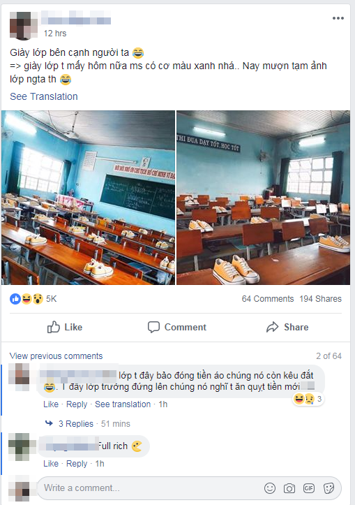 “Quá đẹp quá giàu quá đẳng cấp luôn, trong khi lớp mình chỉ có đồng phục là giày bata, okay!“, mộ nickname khác viết.