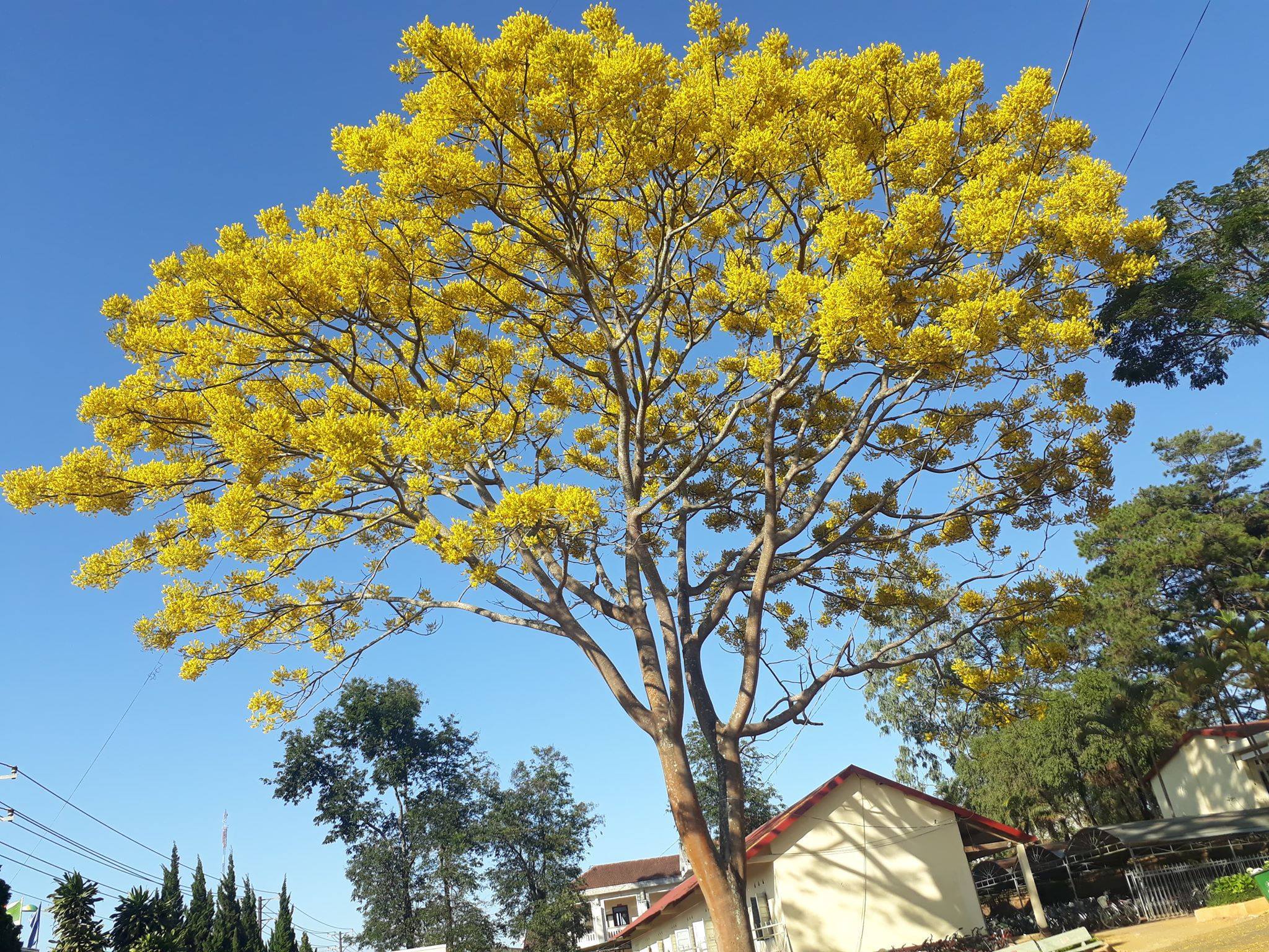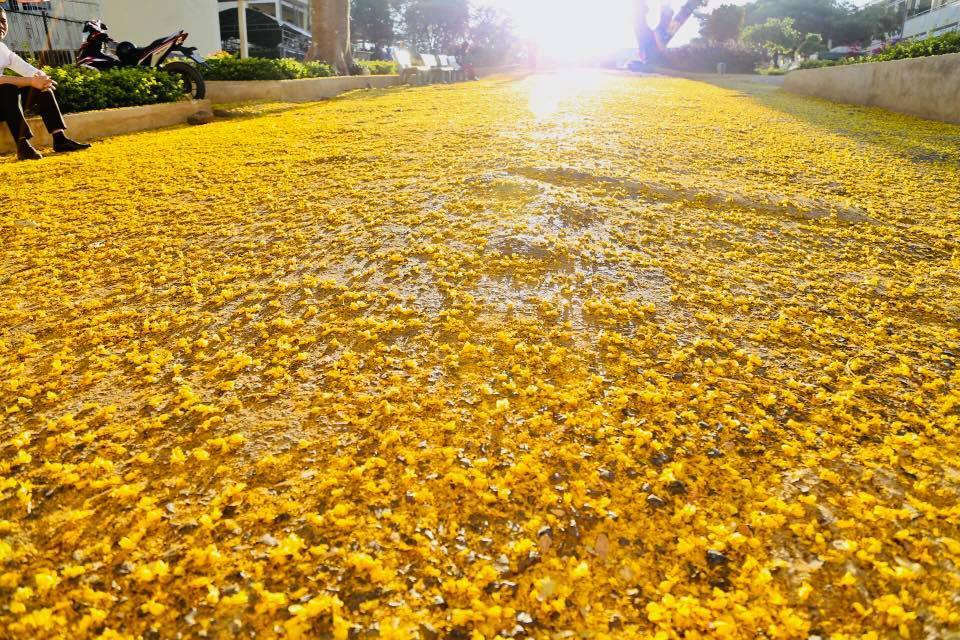 Nhiều người đã từng thấy hoa phượng đỏ nở rực rỡ dưới nền trời những ngày đầu hè, hoa phượng tím mộng mơ, dịu dàng trong không khí Đà Lạt se lạnh, nhưng ít ai đã từng thấy hoa phượng vàng trổ bông bừng sáng con đường báo tin mùa xuân về.