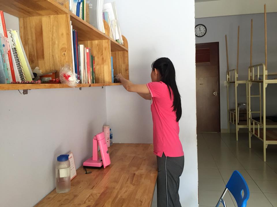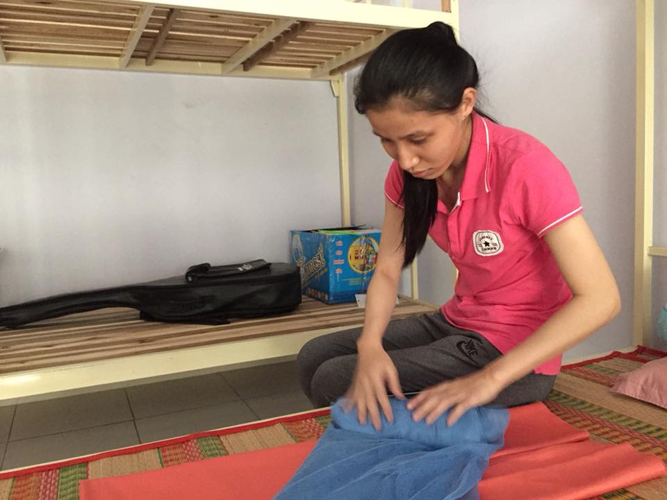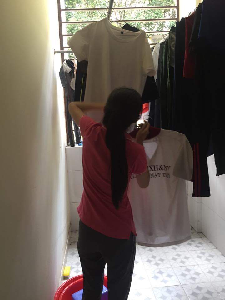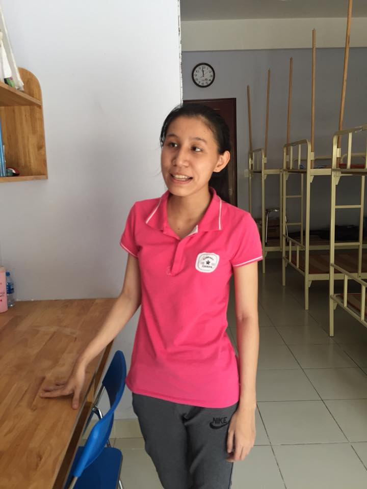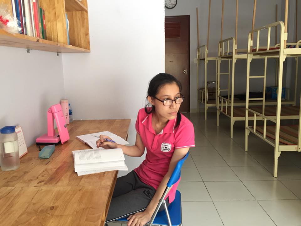 “Lúc đó mình buồn lắm nhưng tình cờ, em gái mình xem chương trình “Cà phê sáng” của VTV3 và biết được thông tin KTX Cỏ May miễn phí toàn bộ từ học phí đến nơi ăn, chốn ở cho sinh viên có hoàn cảnh khó khăn nên mình đã nhờ em gái làm hồ sơ đăng ký giúp mình”.