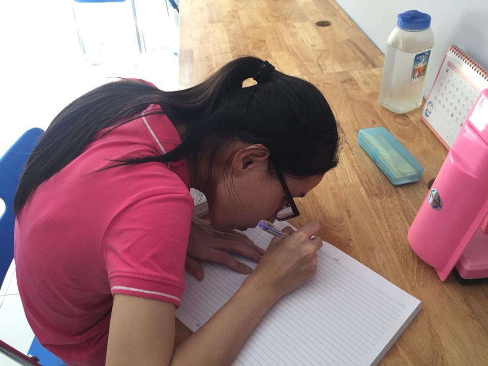 Mỗi lần ghi chép, Trâm phải dùng một chiếc kính dày cộm chuyên biệt, sau đó, Trâm sử dụng phần thị lực ngoài rìa mắt, cúi sát xuống sách vở và ghi chép.