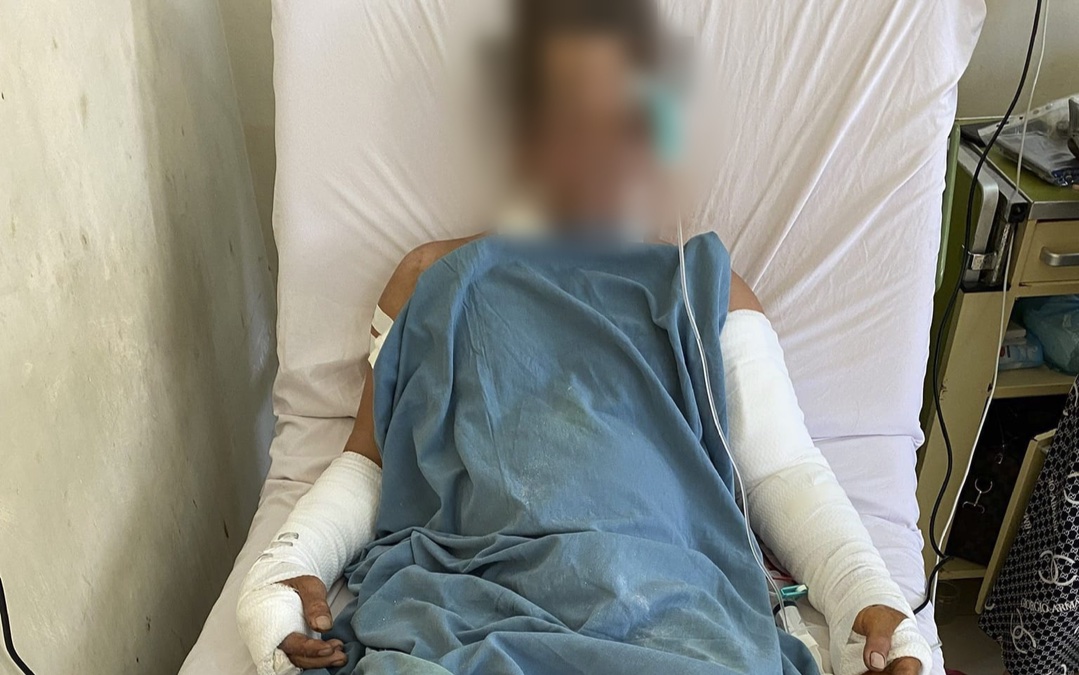 Hiện nay tình trạng bệnh nhân đang ổn định dần, mạch quay 2 tay bắt rõ, huyết áp 133/ 72 mmHg được theo dõi điều trị và chăm sóc các vết thương.
