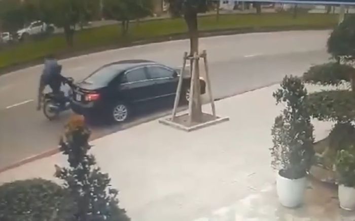 Đối tượng chạy xe máy bám theo, lợi dụng sơ hở đã xông tới mở cửa xe ô tô và giật túi tiền trên tay nạn nhân.