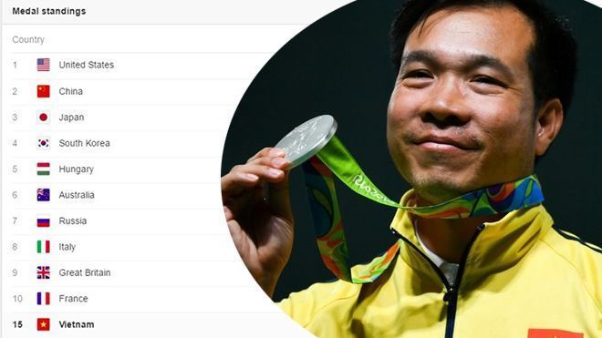 Việt Nam tăng 4 bậc trên bảng tổng sắp huy chương Olympic.