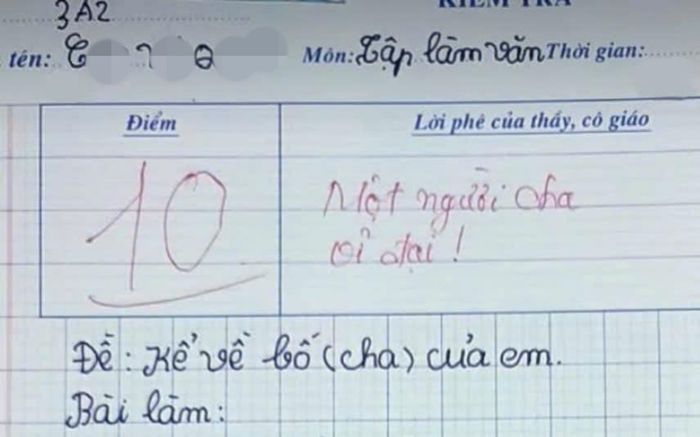 Bài văn chỉ với vài dòng ngắn ngủi nhưng đã chạm đến trái tim của cô giáo và hàng ngàn người đọc khác.