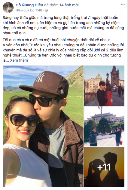 Chỉ trong thời gian ngắn, dòng tâm sự của Hồ Quang Hiếu nhanh chóng nhận được sự quan tâm của cộng đồng mạng. Nhiều người bảy tỏ sự tiếc nuối trước mối tình đẹp trong showbiz Việt của cặp đôi.