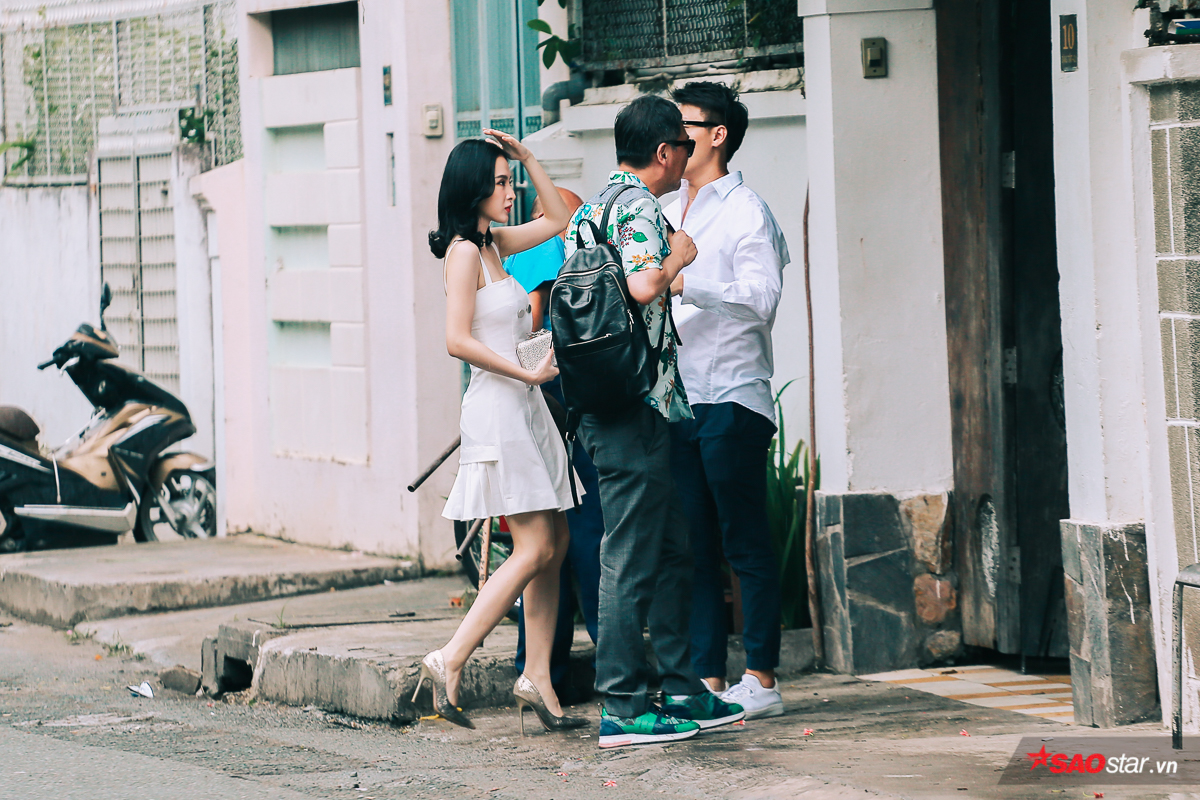 Nam đạo diễn vui vẻ nói chuyện cùng Angela Phương Trinh và một người bạn của cô.