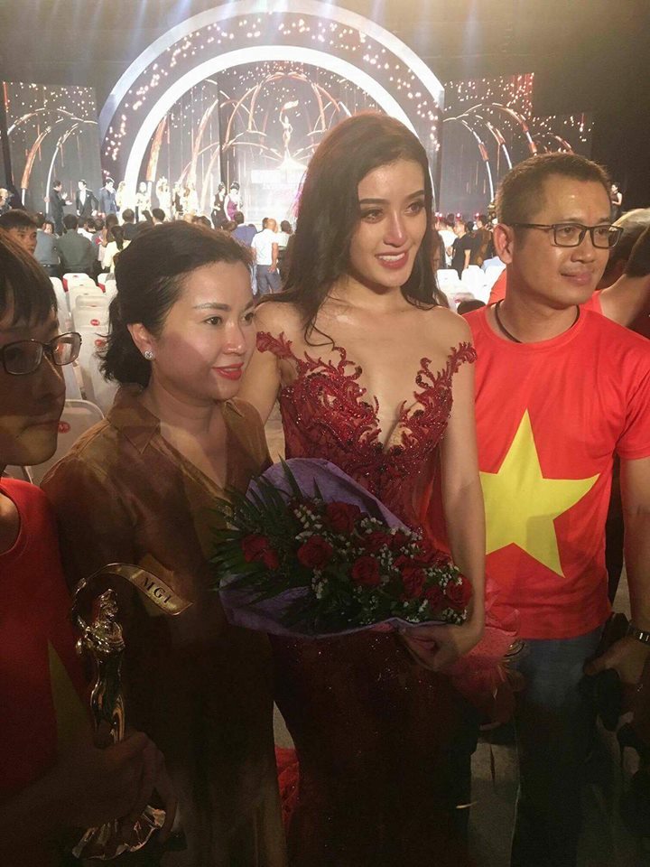 Nhiều khán giả nhận ra Huyền My đã khóc đến sưng cả mắt khi tên mình không nằm trong Top 5 Miss Grand International 2017.