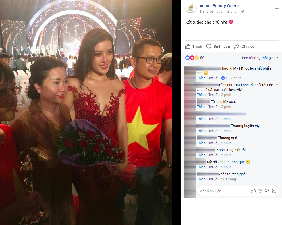 Mới đây, trên fanpage của một chuyên trang về sắc đẹp cũng chia sẻ hình ảnh Huyền My đang tươi cười chụp ảnh lưu niệm cùng bố mẹ và em trai sau đêm chung kết. Tuy nhiên, đằng sau nụ cười ấy, khán giả dễ dàng nhận thấy đôi mắt đỏ hoe của người đẹp.