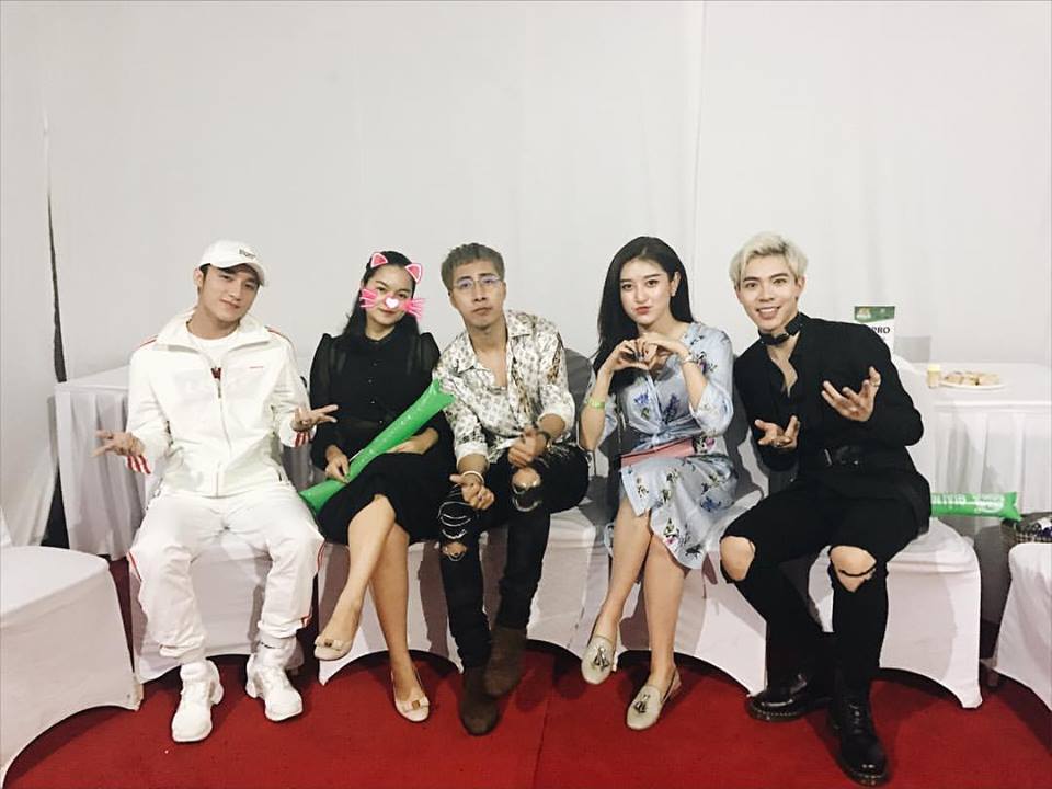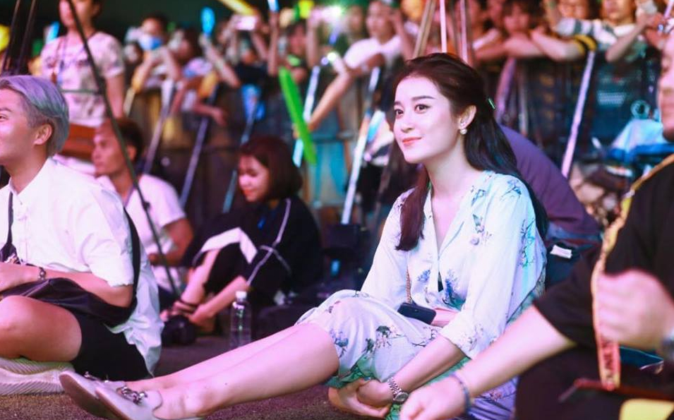 Á hậu còn sẵn sàng ngồi bệt xuống đất, hòa vào khán giả để xem ca nhạc.cổ vũ cho các nghệ sĩ Việt.