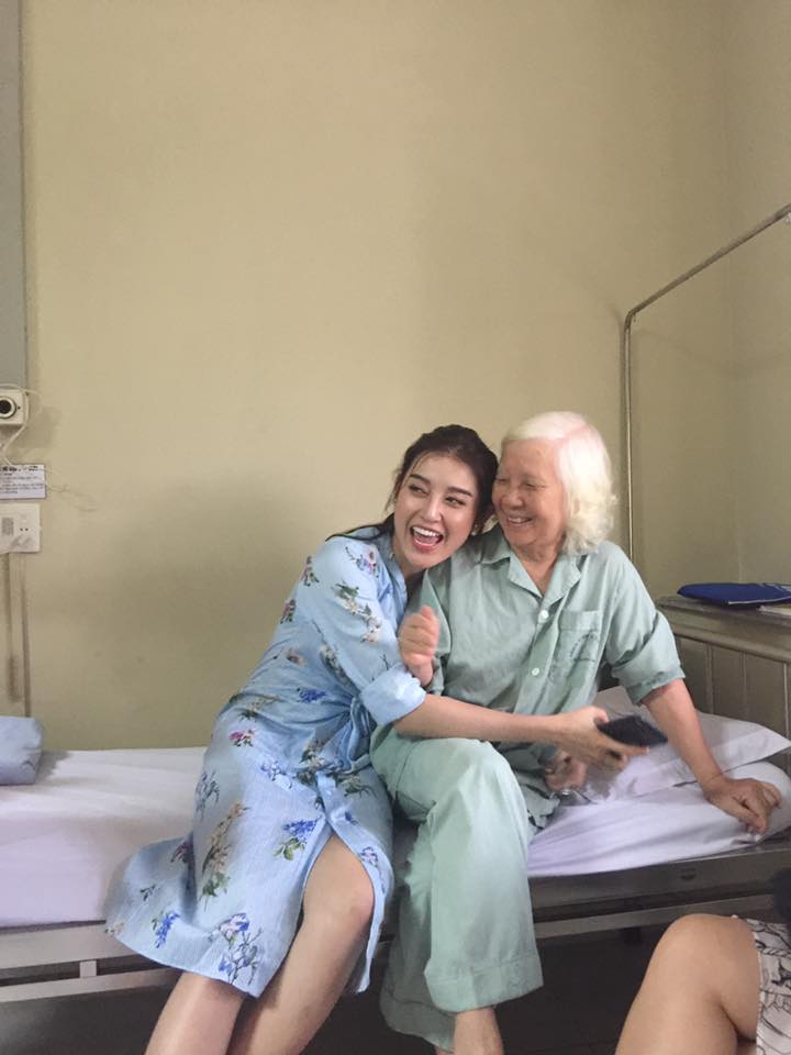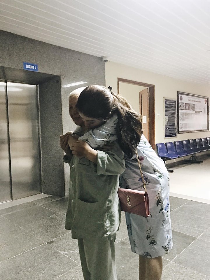 Hình ảnh Huyền My vào bệnh viện thăm bà bị bệnh và nghẹn ngào đứng ôm bà khiến nhiều người vô cùng xúc động.