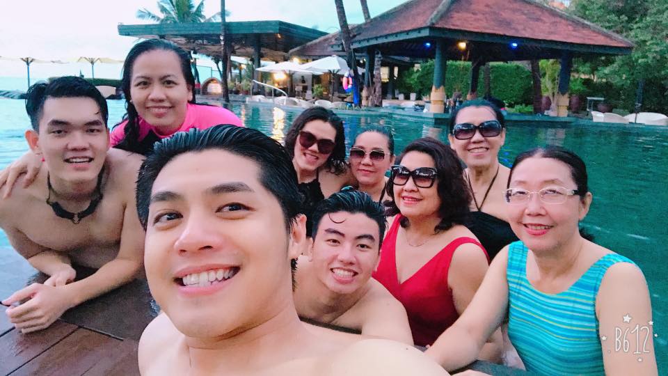 Noo Phước Thịnh đi bơi cùng mẹ, các dì và mấy cháu nhỏ.